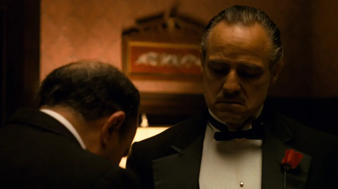 当然,这一技法在电影中被加以运用已是伦勃朗等人定义这一技术之后很久的事了。最经典的应用案例之一是戈登·威利斯为弗朗西斯·科波拉拍摄的《教父》。