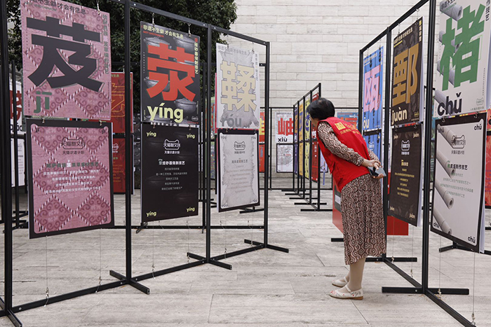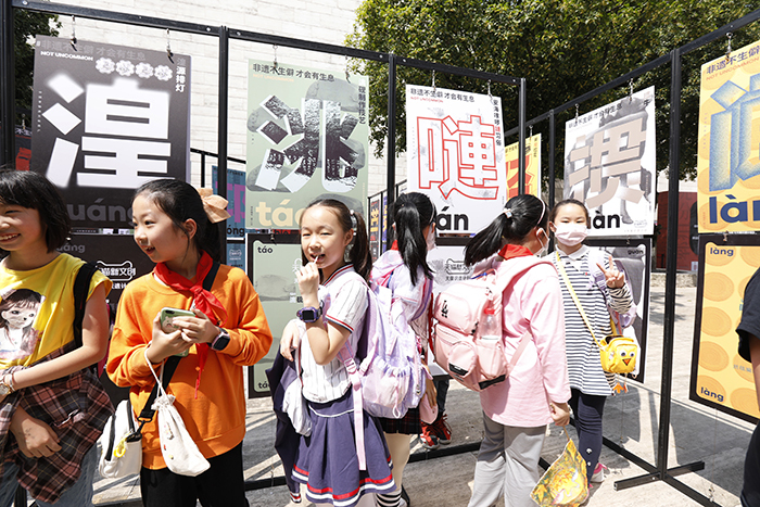 天猫新文创携手杭州良渚博物院举办100张生僻字非遗海报线下展,每一张海报都代表着一项非物质文化遗产。