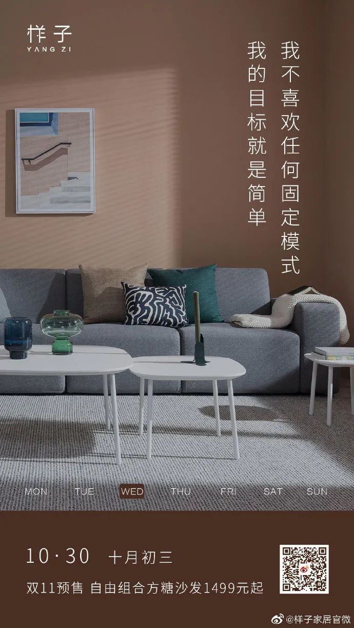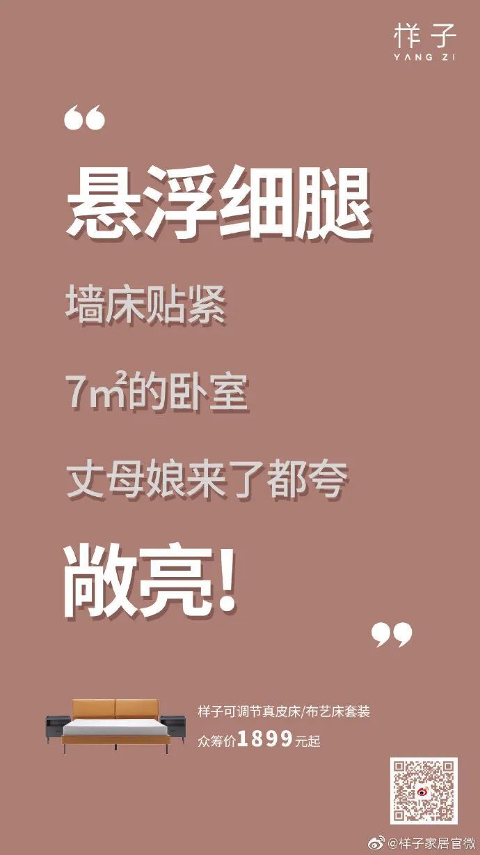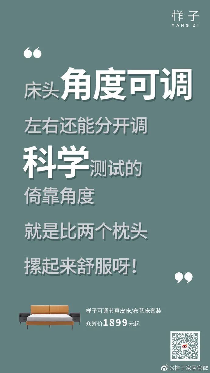 最近,震惊君被一组比小米有品还有品的海报圈粉了。定睛一看,是一个叫“样子生活”的家居品牌,成立2年,曾凭借一架“103°人体工学床”打破了小米有品平台众筹期的销售记录:650万元,被业界称为“互联网家居的一匹黑马”。