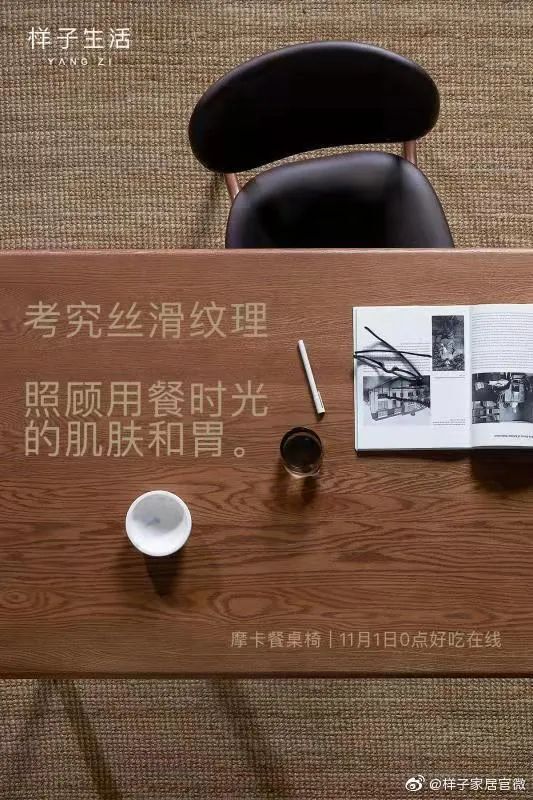 对于新品“摩卡餐桌椅”,样子生活是这样介绍的: