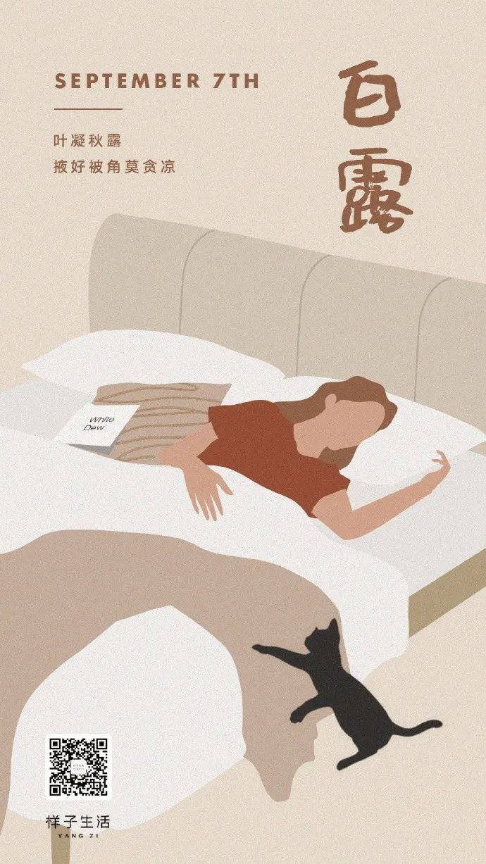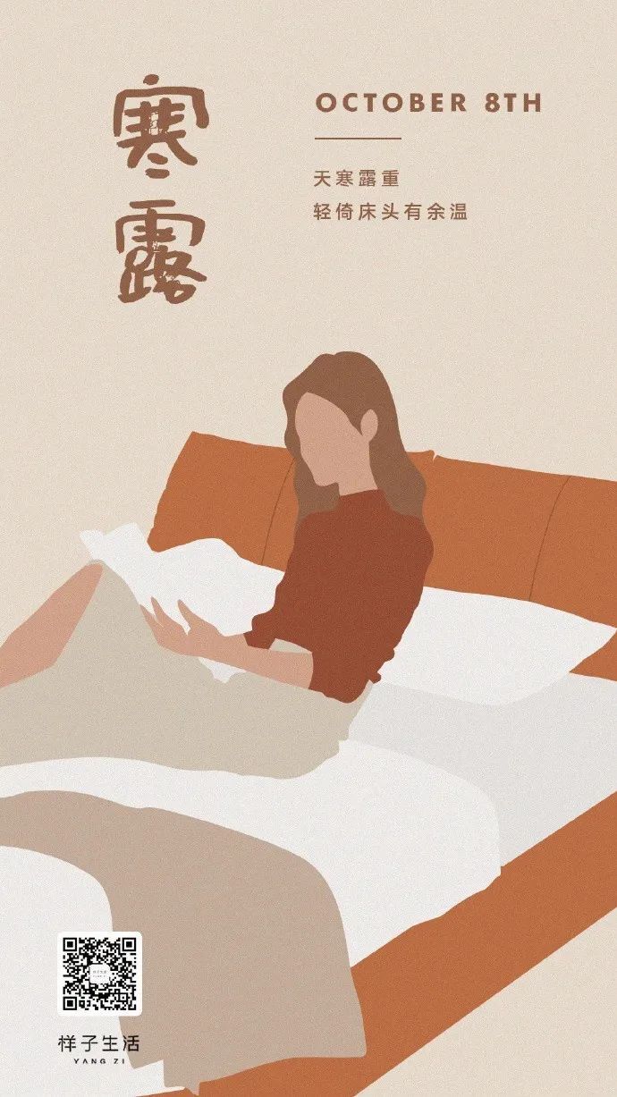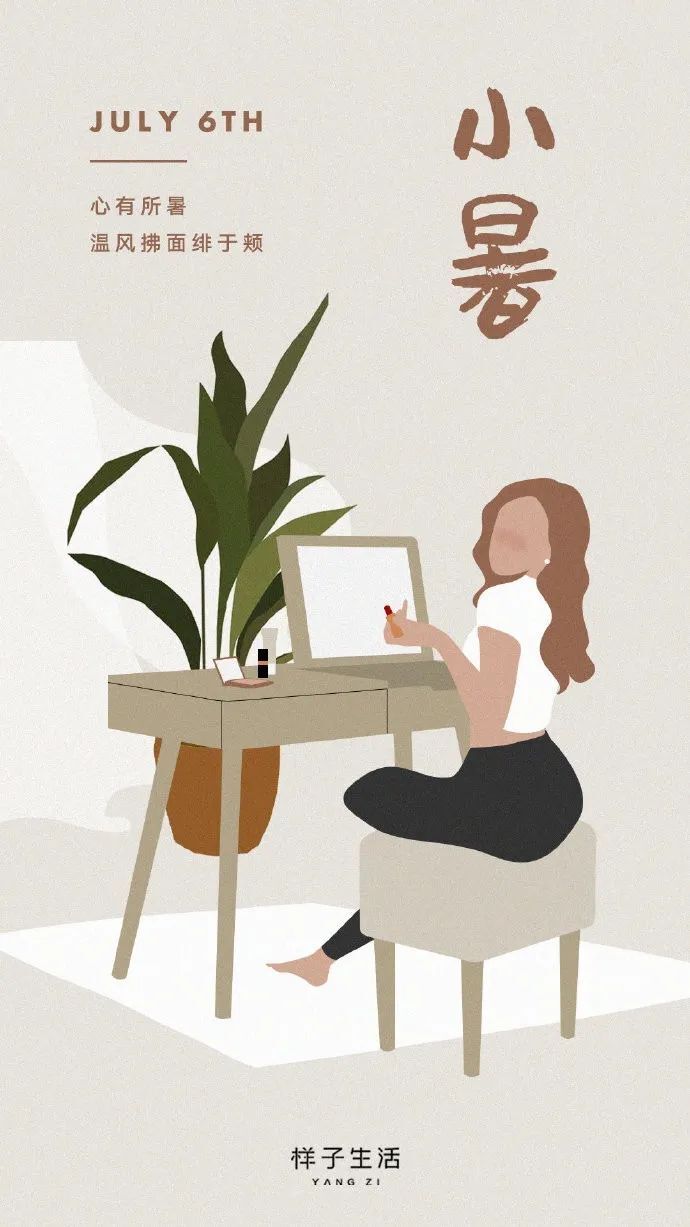 实不相瞒,这组节气海报是震惊君最爱的一组平面。第一次看到着实被惊艳了!相信大家也看过不少品牌推送的节气海报,画风、话术大同小异,很难不让人审美疲劳。但是样子生活的节气海报却是莫兰迪色系的插画,不仅让人耳目一新,更与品牌所坚持的简朴、美好的生活方式如出一辙。