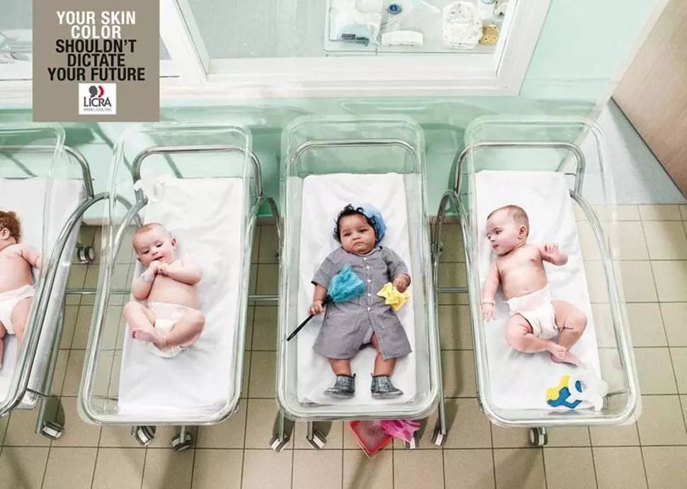 还有法国Licra公益组织的一则广告:“不要让肤色决定命运”。