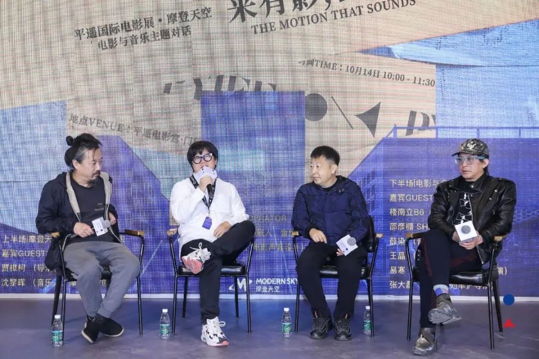 已经认识二十多年的三人回顾了他们漫长的合作经历,沈黎晖、张阳组成的“清醒”乐队,到贾樟柯与张阳共同合作的《小武》,早年间形成的深厚友谊和稳固的合作关系对他们日后的创作起到了至关重要的作用。作为中国最大的独立唱片公司,自1997年成立以来,摩登天空旗下宋冬野、马頔、五条人、新裤子、阿肆、宋雨喆等众多的音乐人都与电影发生了联系,更有一些音乐人本身即为电影音乐制作人。在这样的资源基础之上,贾樟柯与沈黎晖从自身的经历出发,希望能够发起一个支持新晋导演的计划,令新导演与音乐人能够更早地产生联系、建立友谊。除此以外,张大磊(《八月》《蓝色列车》)、王晶(《不止不休》)、易寒(《不期而遇的夏天》)等新导演与B6(楼南立,《南方车站的聚会》)、SHAO(邵彦棚,电子音乐人,孟京辉《恋爱的犀牛》)、薛染(发光曲线乐队领队,《隐秘的角落》片尾曲作者)等音乐人进行了简单的交流,就自身在电影音乐工作中获得的经验体会与大家进行了分享。电影与音乐的对话,这必要吗?许多人对此也许抱有怀疑态度。提出这样问题的人,大概忽视了一点,即电影的本质为一种视听艺术,声音占到了其中的二分之一。然而出现这样的现象,我们并不能简单归咎于某一个人或某个环节——对于电影声音的忽视,是从产业、到创作者、再弥漫到观众之中的。入围本届影展“藏龙”单元的热门影片《野马分鬃》的导演魏书均即是录音专业出身,在片中他借由男主角的经历真实而生动地描摹了录音师在剧组中所处的尴尬地位。上课学四年举杆、接活只需会摁俩按钮,录音师的工作真的如此无足轻重吗?此次平遥电影展“电影与音乐主题对话”首先对电影声音的问题作出了一次普及与提示,它呼吁电影产业更加重视电影声音,也呼吁创作者更早地将声音和音乐纳入自己的创作,从而促进一个更加成熟、完整的电影体系的形成。贾樟柯:我和张阳是北京电影学院93级,我学的文学,张阳学的录音。那个时候年轻人特别流行摇滚乐,他们就有一支乐队。我记得第一次看他们演出,是在我们电影学院的食堂里面,我们那个食堂白天吃饭晚上弄两个转灯,“清醒”还有其他几支乐队就在那儿演出。这是最初的一种认识,但是那个时候年轻人之间因为有了音乐、有了电影,距离特别的近,没什么障碍。前一分钟还不认识,后一分钟已经勾肩搭背是哥们,甚至可以坐在一起聊天喝酒,我很怀念那个时候的那样一个氛围,不仅是音乐,延伸到电影也是一样。我记得我第一次拍短片,因为学生拍短片,当然是没什么钱。拍片就会涉及到音乐的问题,那个时候当然也没有钱来请作曲,我们就找现成的音乐。那个时候张楚刚刚出了一张专辑,其中有一首歌的过门我特别喜欢,我就想用那个。
