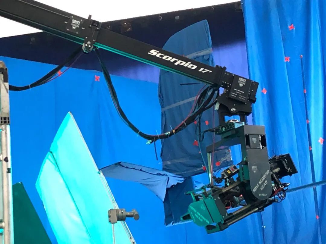 We also used BOLT. Our earliest design included putting an airplane model on the robotic arm, and then the airplane can perform various movements. A camera was mounted on the BOLT, via moving on a track we can capture the airplane’s different positions. The robotic arm and the camera move at the same time, and the data obtained from them are used as references for the special effects, because we were on a very tight schedule.BOLT with the aircraft modelHow are the positions of the electronic telescopic cranes allocated? Which memorable shots did you shoot with the electronic telescopic crane? How do you feel about the Scorpio 17’ electronic telescopic crane?