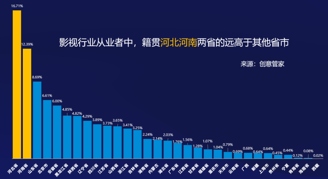 影视行业从业者中,籍贯河北河南两省的远高于其他省市