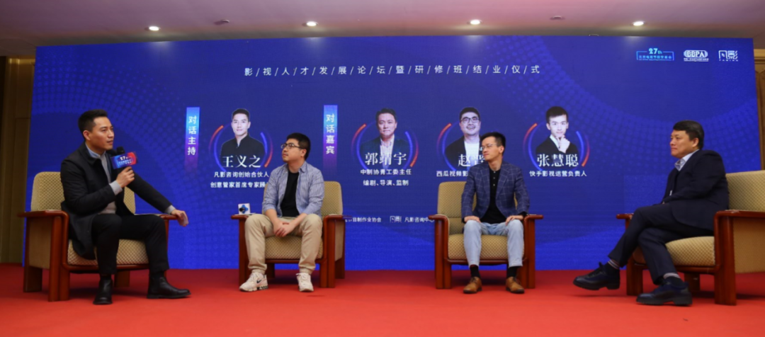 首都广播电视节目制作业协会会长刘燕铭、中国电视剧制作产业协会副会长兼秘书长王鹏举、中国电视剧制作产业协会青年工作委员会主任郭靖宇、容艺教育创始人CEO李霞、快手影视运营负责人张慧聪、西瓜视频影视运营负责人赵晋、凡影咨询创始合伙人王义之、李湛等来自行业协会、教育机构、视频平台、行业服务公司等多位嘉宾共同参加论坛。