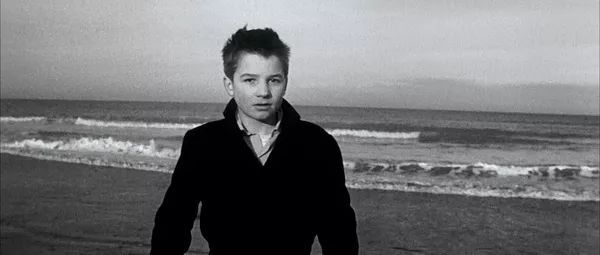我就是20岁时在刚成立的电影资料馆看到的,这部片对我影响很大。尚•皮耶•里奥在里面演一个14岁的小男生,楚浮借由他拍了一部半自传性的电影,讲自己青少年时期逃学、逃家的经历,他不是坏小孩,但就是很皮,家庭也不太美满,他犯了很多小错,但他爸爸妈妈就放弃他、把他丢到感化院里去,最后他从感化院里逃出来,这部电影就结束了。很好玩的是,这个14岁的小孩 几乎是打开了我对电影的新的窗口,因为这部电影的ending就是这个小孩逃出来、一直跑一直跑,大概跑了4、5 分钟,镜头就一直跟着他、背景只有一点淡淡的音乐,4、5 分钟长不长?在当时的商业片概念里,4、5 分钟能讲好多事情啦:打耳光啦、吵架啦、杀人啦,可这里就是这个小孩一直跑,跑到海边,前面没有去路了,他就回眸、看着镜头,眼神正好盯着观众,镜头停格、电影结束。
