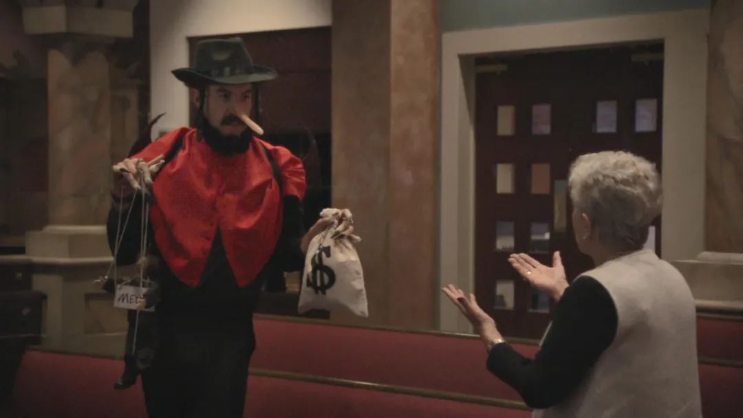 诸如此类的“真实现场”在影片中比比皆是,不管这些现场是出自偶然,还是波拉特精心策划的必然,它们显然都在波拉特的预期里奏效了。整部作品便是借由这些频频登上新闻媒体的所谓“真实”事件,给了保守党派作恶和虚伪的一面一拳重击。