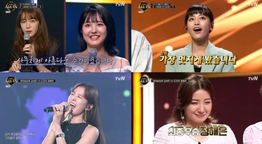 节目简介:《全部下注》是一档结合了奖金下注元素的游戏音乐类试播节目,共播出2期。节目赛制分为下注舞台和最终舞台两个阶段。下注舞台分为六轮竞演,五位素人选手带着节目组给的500万韩元的原始下注资金,在每轮演唱之前为自己下注。同时,每轮还各有一位明星嘉宾作为下注辅助。每轮竞演开始前,节目组公开该轮表演曲目,下注最高的素人选手可以挑选本轮竞演的对手,两人同唱一首歌,由现场评委与线上观众共同打分,获胜者可以获得对方的下注资金。此外,每位选手各有一次all in机会,不论手上保有多少金额,只要all in,即可挑选对手。五位素人彼此不知道对方的嗓音,且竞演过程中,不下场竞演的选手也听不到比赛的选手表现。下注舞台中积累了最高金额的素人选手可以进入终极舞台,与明星歌手进行比拼。选手可以选择all in或stop两种下注方式,all in胜利时可以获得双倍奖金,失败时一无所有;stop无论胜败都只能获得奖金的50%。