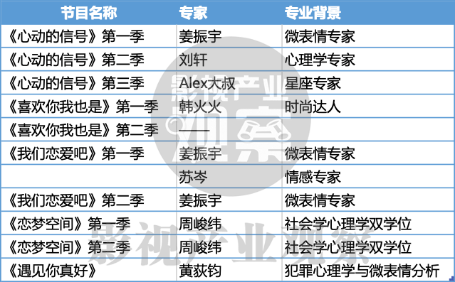 而专家其实是国内恋综比较头疼的一个角色。韩国素人明星化的趋势明显,素人在各大综艺节目上能够拥有平等的话语权,但国内节目专家想要找到存在感并不容易。再加上国内明星基本没有相关背景,专业性解读的任务就都落在了专家身上。