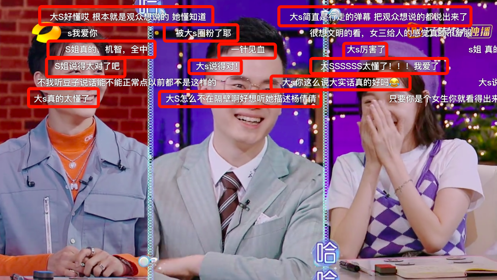 一部分姐姐们在节目中负责金句输出,比如伊能静、戚薇,几乎每期节目播出后,她们的观点性表述都会登上热搜,引发大范围的讨论。而比起个人的婚恋观点输出,观众其实更想看到“只有女生才知道女生是什么人”的解读。《恋梦空间2》的大S可以说这类嘉宾里表达最犀利的一位,直言女嘉宾朱云慧“她打扮得很心机”“她戏很多”“从头到尾都在装可爱”,引发了观众的一致认可,弹幕上全都是对大S的称赞。