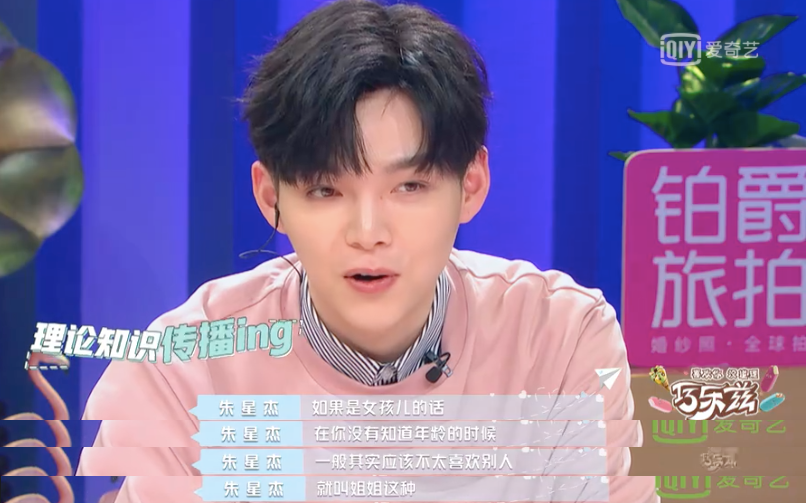 而在众多爱豆当中,《喜欢你我也是》的朱星杰是一个例外,他的定位更接近于“鉴茶达人”或“妇女之友”,也就是上述部分姐姐们的定位,比如在第一期节目里,朱星杰就点出,杨倩倩在不知道刘问年龄的情况下叫对方姐姐是不太好的行为。可见不管是姐姐还是爱豆,找准符合自身形象的差异化人设,才能对节目有所加成,为自己提供有效曝光,达成双方期待的双赢局面。