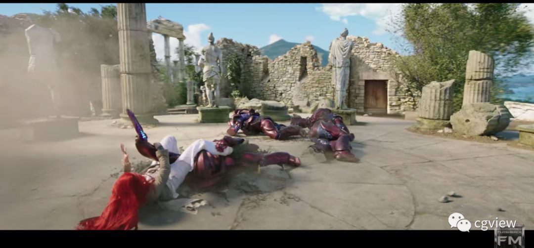在Mera和soldier 打斗的过程中,texas switch时不时的就被搬出来用一下,像上面这个镜头衔接的时候,大概就做了40帧的全CG画面来前后的镜头衔接起来的。(视效的小伙伴应该是称这个为CG接镜)