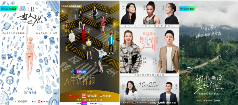 2019年,女性题材撑起了文娱市场的半壁江山,如《我家那闺女》《妻子的浪漫旅行》《我们是最好的朋友》等综艺节目屡登话题中心。而新世相也联合腾讯视频和火锅视频,顺势推出了微综艺《女人30+》。