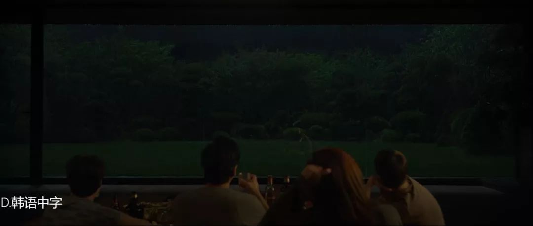 ①光线:光线运用的很棒,半地下室的暖意与温馨(凸现了原来的生活的甜蜜与纯真),豪宅里的明媚(提现了一家人步入上层社会的前途光明),地下室的阴暗(使影片步入转折,同时按时人物内心的黑暗)