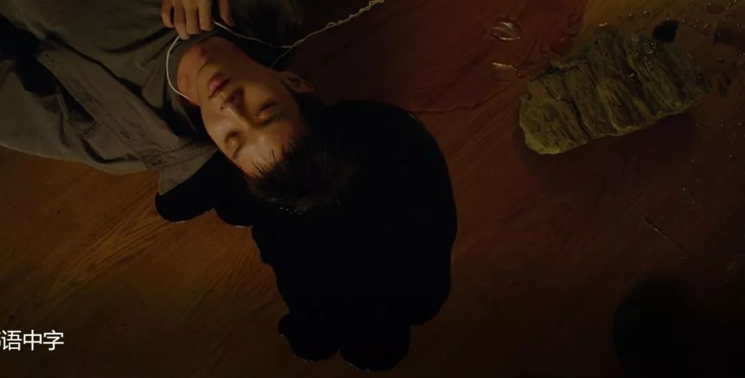 再之后,到了多颂(小儿子)的生日派对上,男主拿着石头想要杀掉地下室里威胁着他们的男人,却不料被男人制服,击中头部