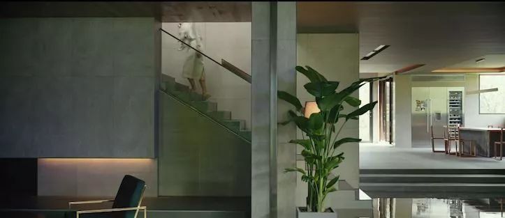 ②色彩:在豪宅里基本采用冷色调,家里的家具,衣着,均采用灰色、绿色、黑色,令人觉得压抑,暗示着上流社会的灰暗。