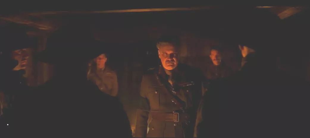 身居高位,在影片中有一段片段据说后期没有加上:将军在给男主、男二分配完人物的时候回到桌前开始吃下午茶,可见他对两个士兵的轻视和不屑。
