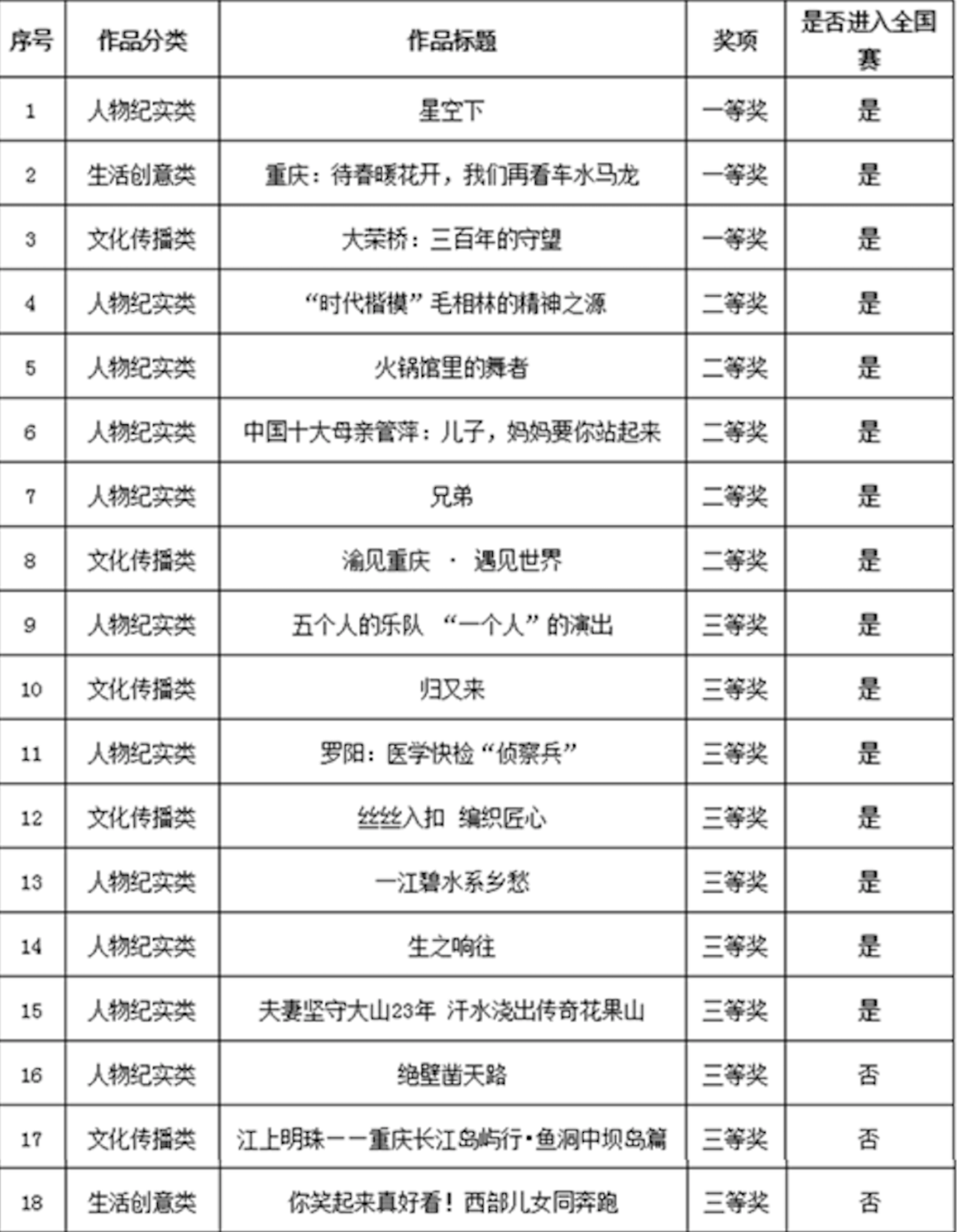 该赛重庆分站赛启动以来,共征集作品270部,经过专家初评和现场定评等环节,共有40部优秀作品获得一、二、三等奖和优秀奖,其中15部优秀作品入围全国赛。