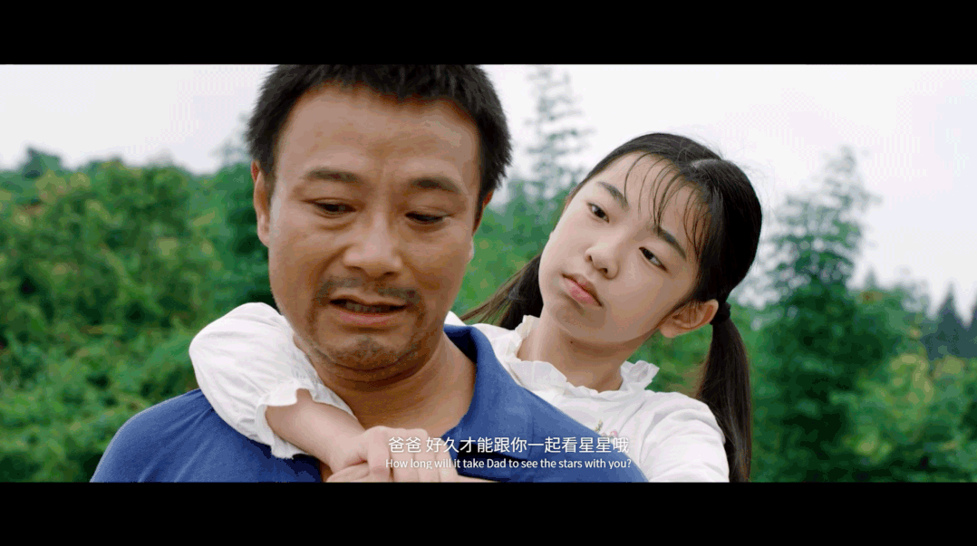 女孩感受到父亲为自己做的一切,逐渐对父亲敞开心扉。但在孩子的世界里,他们更希望得到父母的陪伴,片中女孩表达想和父亲一直在一起的愿望最能充分体现。只是和很多留守儿童一样,女孩的诉求终究落空。腿脚不便的老母亲独自抚养孙女长大,作为长辈的她能够理解儿子为家的付出。母子见面时的拥抱、老母亲的一声“儿子”一表这些年的思念之情。相较儿子与孙女的父女关系,成年人的世界更多了一份对彼此的理解。老母亲的戏份虽然不多,却也从侧面推动着剧情的展开,她见证着父女两的关系从生分到融洽,又面露难色为最终儿子又一次离开,预料孙女再次失落做铺垫。