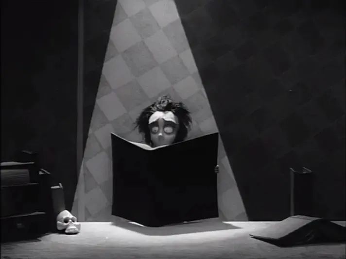 你可以立刻认出一部韦斯·安德森的情节喜剧电影,或者是吉尔莫·德尔·托罗的奇幻电影,他们的电影世界精雕细琢,每一帧影像,无不闪耀着强烈的个人风格。哥特电影的标志印象是禁欲与死亡,其风格是孤独,黑暗,高贵却饱含对美好的向往。说起哥特式风格电影,蒂姆·波顿也是一位个人风格极强的导演,在这篇文章中,将看到一部电影中构成每个镜头的众多元素,例如照明,服装,色彩等。我们主要来讨论故事背景以及蒂姆·波顿如何在银幕上构建他的影像世界,将观众径直传达至他那吊诡惊悚又欢腾雀跃的头脑中,这篇文章的主题是“波顿和他的故事背景”。首先,我们需要区分故事背景和布景。故事背景是故事发生的整体时间和地点,而布景指的是那个故事背景中的具体场所。在波顿的蝙蝠侠系列影片中,哥谭市即本片发生的故事背景,而Axis化工厂或蝙蝠洞则是影片的布景。那么应该如何进行布景设计呢,一切皆始于分场景剧本。比如《剪刀手爱德华》的一个场景,剧本标出了布景中的具体要素:Framed photographstake up an entire wall. Kim gives the impression of wholesomeness, of being freshly polished.”“Mystified, he reaches out to steady the wobbly mattress and tears a small gash in it.To his horror, water begins to ooze out.”“Stuffed animals cover the pillows on the waterbed.”从剧本描述来看,这是个非常普通的卧室,但这里却是布景设计发挥作用的场景。波顿和他的美术设计博·韦尔奇将爱德华刻画成一个与周遭格格不入的形象,仅从两人的卧室布景就可以看出,爱德华和金是有着天壤之别的两个角色,如此便可以完成布景设计和人物世界的架构,每次呈现一个要素。场面调度有两种截然不同的模式,自然的场面调度和戏剧化的场面调度。蒂姆·波顿的多数作品全然使用戏剧化的场面调度,学者Timothy Corrigan和Patricia White如此描述,“奇幻环境在人工制造和筑建的‘大自然’中呈现,甚至可以说是争奇斗艳”。纵其违背自然规律和社会规律,波顿喜欢打破这些定律,这种偏爱自伊始就存在于其作品之中,不管是《汉赛尔和格蕾特》中梦魇般的重现,或是他献给文森特·普莱斯的《文森特》。蒂姆·波顿擅长对场景环境等进行创造性的加工,尽可能的给观众提供一种不一样的感觉,即便是原来平淡无奇的故事,往往也因为他对周遭世界的改造而大放异彩,而这种场景的这种加工,很大程度就体现在他在哥特风格的运用。阴郁恐怖的哥特艺术的盛行,维多利亚时代是当时浪漫主义的一种重要组成成分。哥特风格体现在叙述氛围上,就是能够给予人无限的恐怖与刺激,如凶杀复仇,但另一方面,又没有单纯的沿用传统的哥特艺术风格。准确的说,他表现出来的是他个人的哥特情缘,是他在自己的审美片偏好中改造过的哥特的风格,这就使得他的电影在叙述氛围上于哥特本身带来陌生化之外又多了一层陌生化,他是掺杂了一点自己内心思想的一种哥特风,所以这种陌生化之中又带来一种陌生化。以动画片《文森特》为例,在表现一个孤独的七岁孩子的童年生活时,他没有按照迪士尼的惯常风格表现主人公的天真善良,而是展现他所处的两个分裂的世界,在现实世界中,文森特早熟听话彬彬有礼,但是在文森特个人的内心世界,他给自己编制了许许多多奇怪的故事。在他幻想中自己是一个类似于艾伦坡笔下的阴郁凶手,在杀死自己的妻子之后良心被折磨,于是想挖开埋葬妻子的地方看看是不是里面有真正的尸体,事实上这个坟墓是他母亲的花园,他就遭到母亲的禁锢惩罚。我们或许知晓“波顿风”的含义,但究其灵感来源,是来自德国表现主义吗?还是来自怪物电影?亦或者是科幻电影?或者来自定格动画大师雷·哈利豪森?囊括了所有打破自然定律的电影类型和电影风格,波顿的电影中,即便是寻常世界也是经过夸张处理的,了解波顿作品的人都清楚,其作品风格往往夺框而出,但波顿是为了塑造风格而塑造风格吗?又或者其故事与主题为此富于表现力的设计提供了支持呢?波顿的电影一直以哥特风格,暗黑童话,怪诞造型为主要元素,而与一般的哥特风格电影不同的是,波顿在电影中的电影美学更能给人视觉上的冲击,并且借着怪诞的人物造型,给你留下深刻的印象。尽管他的电影营造出强烈的哥特电影氛围,但是却隐隐显露出他们充满童真的世界。比如,有着一双剪刀手的爱德华,妆容怪异的疯帽子,邪恶的红心皇后等等。在波顿的笔下,电影中的人物总是有着怪异但却贴切人物形象的造型。波顿的作品在基于色彩逼真性的基础上,对其真实性进行了主观化的处理,用大量的色彩,鲜明的色调给大家讲故事。《剪刀手爱德华》中整个小镇都是色彩鲜艳的,蓝色的天空,黄色和粉色的房屋,绿色的草地,而拥有黑灰色外表的爱德华与这些显得格格不入,从而也能推断出影片最后爱德华被居民们驱赶的结局。而波顿的大部分作品的主要色调都是以昏暗的黑灰色为主色调,在用其他的鲜明颜色来表现主角的主观情绪。《理发师陶德》中,回忆镜头都使用温和的黄色作为基色,与现实的灰色伦敦形成鲜明的对比。《僵尸新娘》中的人间,导演使用黑白灰以及阴冷的蓝色为主色调,而阴间使用色彩鲜明的暖色,错位反讽了影片中人世间的冷漠与疏远。李国豪导演的《乌鸦》在表现男主的情绪时,使用了大量的颜色鲜明的镜头来凹显,使得整个片段的节奏加快,同时给