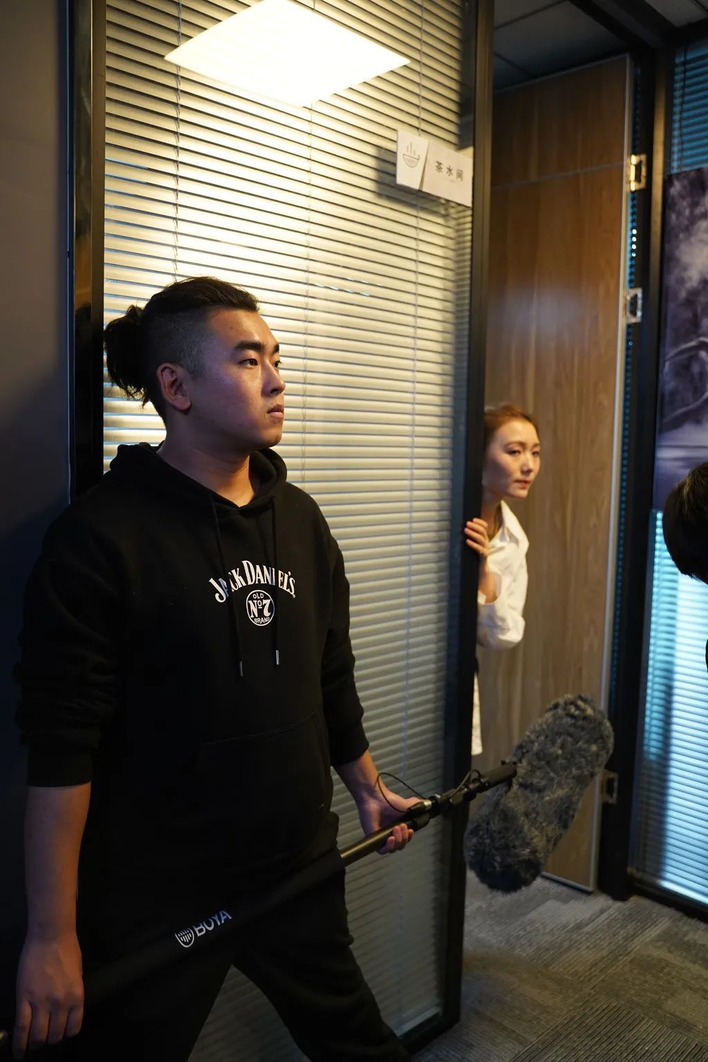 (摄影师)刘清源:由于这次拍摄是在写字楼办公室的实景拍摄,狭小的空间和层高限制意味着我们需要抛弃掉一些传统的灯具,例如HMI,可能更多的时候采用LED类灯具才是我们更佳的选择。神牛为我们赞助了不少LED类的聚光灯,发挥了巨大的作用。