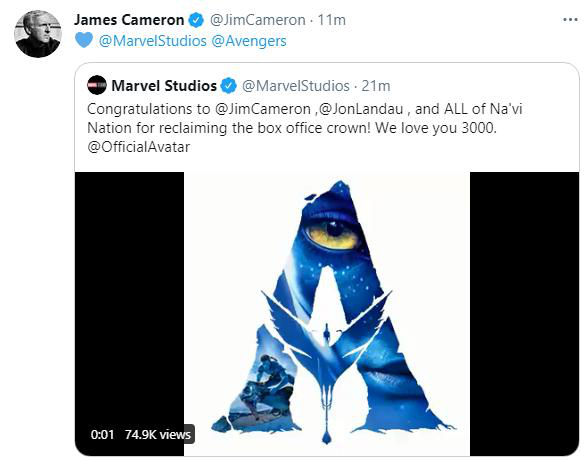 3月12日上周五,《阿凡达》空降中国影院,并以令人惊叹的速度在短短3天时间内就拿下了超过1亿票房。截止3月18日,影片在中国内地累计票房达15亿元。凭借这一成绩,《阿凡达》以28.02亿的累积票房打败2019年的《复仇者联盟4》(27.97亿),在12年后再次夺取全球票房冠军。