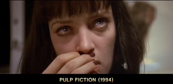 此处的推轨变焦原本是广角,摄影机也离人物很近,在拍摄的过程中,当镜头变焦到望远程时,摄影机迅速轨远离人物,如此一来,人物在画面中的大小不变, 但背景却看起来离她更近(注意和格比起来,一格的走廊上,墙面的面积少了许多)。这一幕推轨变焦有效地 传达出主角在关键时刻有多么惊讶、迷惘、震惊,同时也示范了当人物的大小维持不变时,焦距的改变并不影响景深, 因为摄影机到主体的距离抵消了这个落差,背景从头到尾都失焦,不论镜头用的是广角端(一开始)或望远程(结束时 )。
