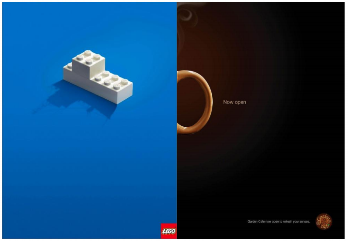 下图中两张海报分别为乐高积木、咖啡厅的概念海报。