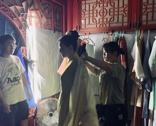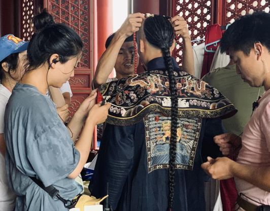 在拍摄间隙,每个镜头结束下一个镜头开始之前,因为演员在表演时衣服形态会变化,工作人员都会再一次做调整,让衣服在每一个镜头里都能呈现出最完美的状态。