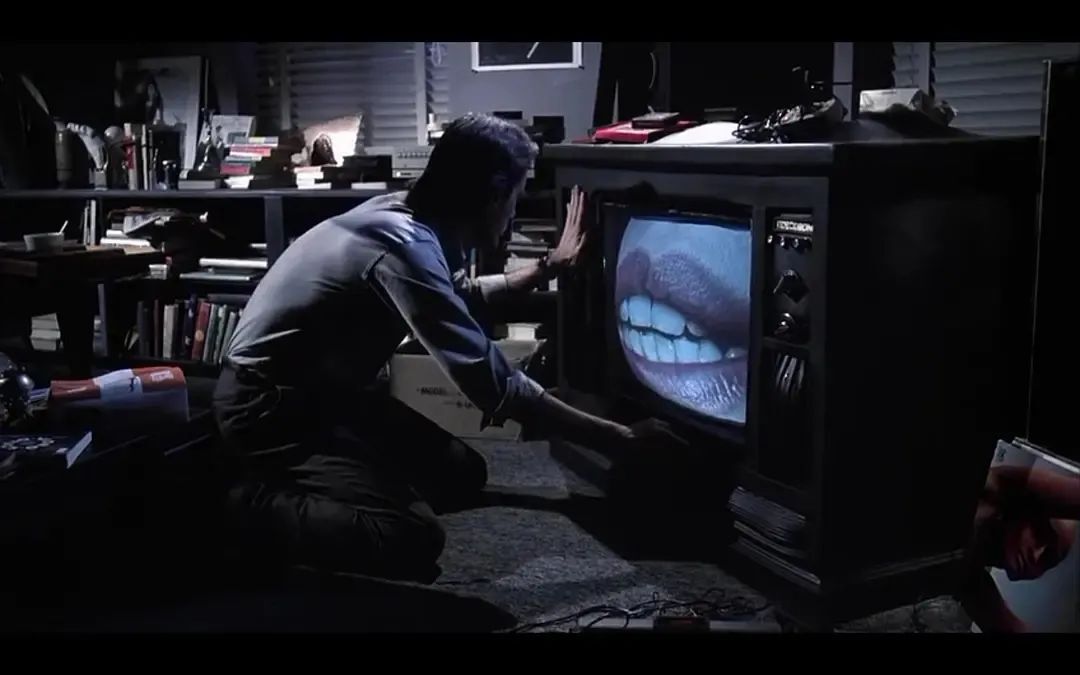 大众媒介的另一面是柯南伯格影片的另一个主题,《录影带谋杀案》是一部重要的影片,它以一种极度不安的形式展现了媒介对人们的控制,正如影片的英文原名:Videodrome——录像狂。预言了媒介与拟像在接下来的一个世纪中的反客为主,影片的主人公Max是一个迷恋色情,暴力影像的观看者,通过接收来自世界各地的影像——马来西亚的电视信号,日本的暴力节目等等都构成了一种奇观的“东方”想象,最终,他被这种观看的力量控制,影片最为经典的一个镜头是一双手从电视影像中伸出,这双手名为意识形态。另一方面,这部影片实际上以情节剧的方式重述了《立体声》之中的概念,作为大众媒介的电视与录像带成为了精神性电传的接收器,如今,《录影带谋杀案》也成为了当代的赛博空间的隐喻,一个反应回路更短的电视屏幕,也许你下载了一些东西,然后警察就会闯入你的家中,将你投入监狱。