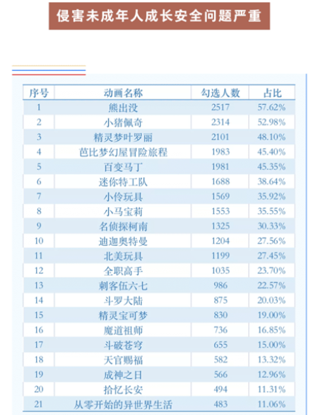 可以理解,这样对原作进行微调,出发点是为了保护未成年观众。但一来,《工作细胞》本不是一部仅仅面向未成年受众的青少年科普番,它的剧迷有相当大比例是成年人。二来,细胞和细菌打得酣畅的战斗场景,原本也是《细胞》系列的一大亮点和燃点。所以于部分对原版动画有执念的观众来说,算是一点遗憾。联想到这两年因为各种离奇原因被删改,甚至被举报下架的动漫,因为角色染发、穿着奇特被停播整改的《菲梦少女2》。因为有小孩子模仿后被烧伤,所以禁播5年的《喜羊羊与灰太狼》。还有之前明明是科普向,却因“血腥暴力”被家长追着举报的童年经典《虹猫蓝兔七侠传》。更离谱的,是因为“不能让孩子觉得可以像大雄不劳而获”,所以下架的《哆啦A梦》。但比起禁播这些“问题动画”,监护人正确的引导和健全的家庭教育,能起到的作用或许更大吧。4月7日,江苏省消保委发布了一则“动画领域侵害未成年人成长安全消费调查报告”,指出——调查的21部动画片,共包含1465处易被模仿危险点,包含阴暗黑暗元素和强植广告行为。《熊出没》《小猪佩奇》《迪迦奥特曼》《名侦探柯南》《精灵宝可梦》等热播动画全部上榜。别说《小猪佩奇》里的开飞机舱门了,就连人物“突然大笑”都被视为某种阴暗元素。有近七成的家长担心,孩子会模仿动画片里的人物行为。可照这种标准来审核的话,什么样的作品是完全不存在安全隐患的呢?所以呼吁“动画片分级”的声音也日趋壮大了起来,希望有关部门可以听听群众的声音啊。总之,一部作品看过后,不论是让人心情愉悦还是学到了新知识,都是有所收获,也不枉创作者们为之倾注的心血。就像《工作细胞》的作者清水茜说过的:“希望做出让大家认真思考自己健康的动画。”在下一次喝酒、熬夜、抽烟、暴饮暴食之前停下想一想,会不会给身体造成太大负担。