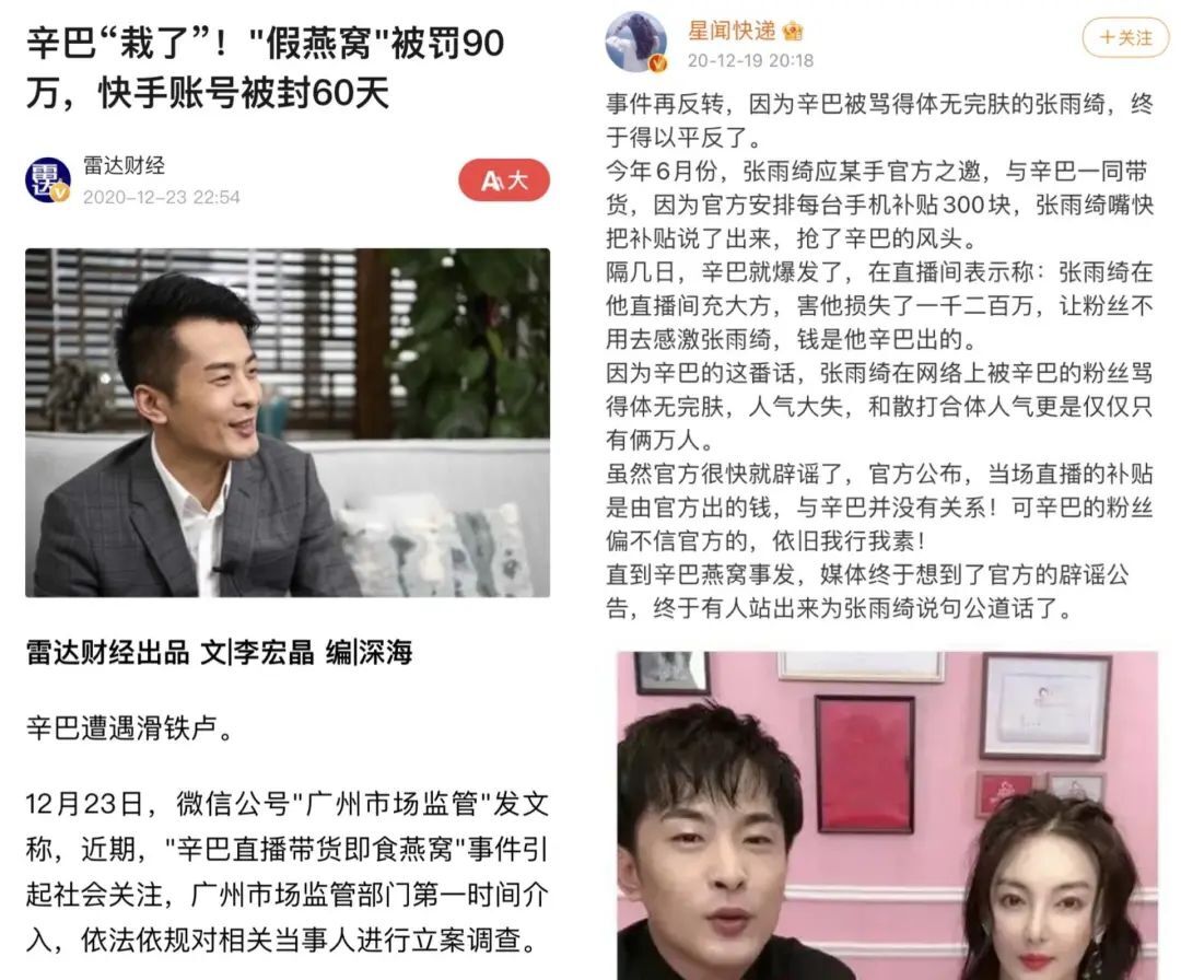 性别或许是影响热度的因素之一,但达人的成功绝不会是因为性别。品牌方不该片面考虑合作主播。去年底,头部网红直播手辛巴就因“假燕窝”事件被罚款90万元并被封号60天,与张雨绮的直播间卖手机事件也是闹上热搜,以品牌方澄清为结果。