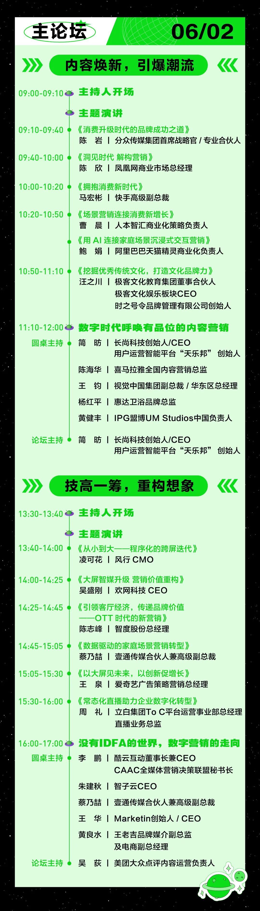 >>还将同步举行三场行业平行论坛,聚焦于智能大屏营销、全媒体营销决策及汽车营销领域,如果你对这些领域比较关注,显然不容错过。