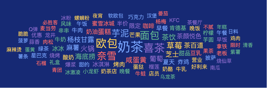 而如果我们查看“乐乐茶”同时间段的品牌词云,可以发现内容大多聚焦在产品、配料等层面,大众品牌认知会更加聚焦。