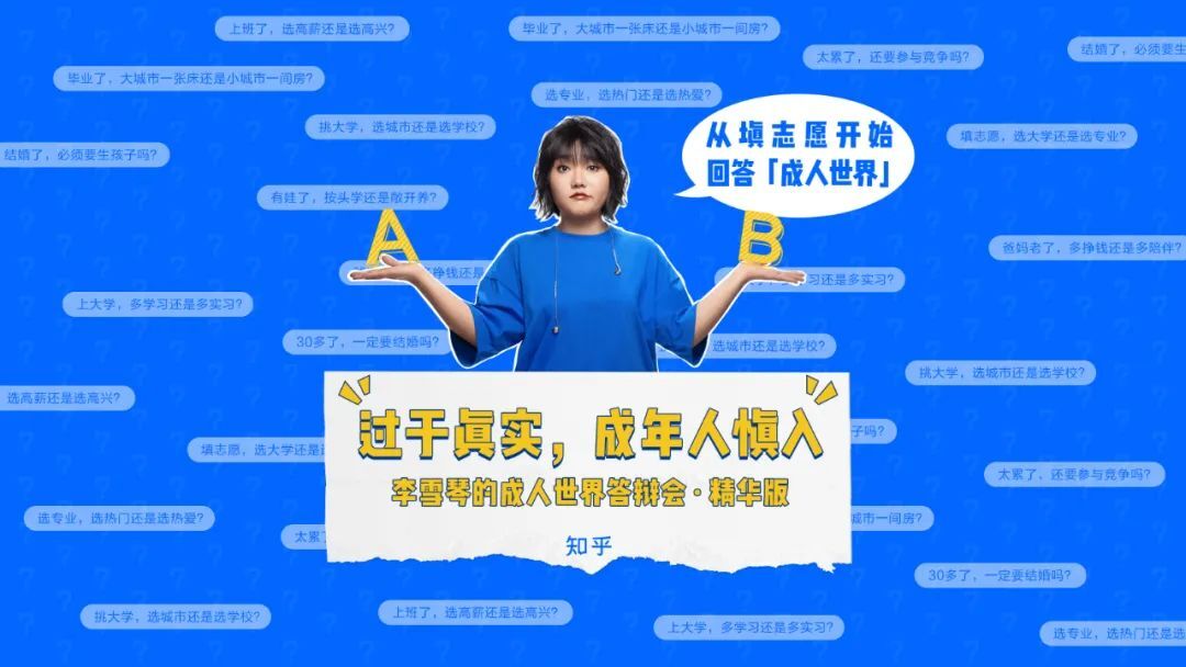昨天晚上,知乎联合李雪琴出了一期《成人世界答辩会》,从高考报志愿,到就业、结婚、生娃,人这一生有太多太多的选择。