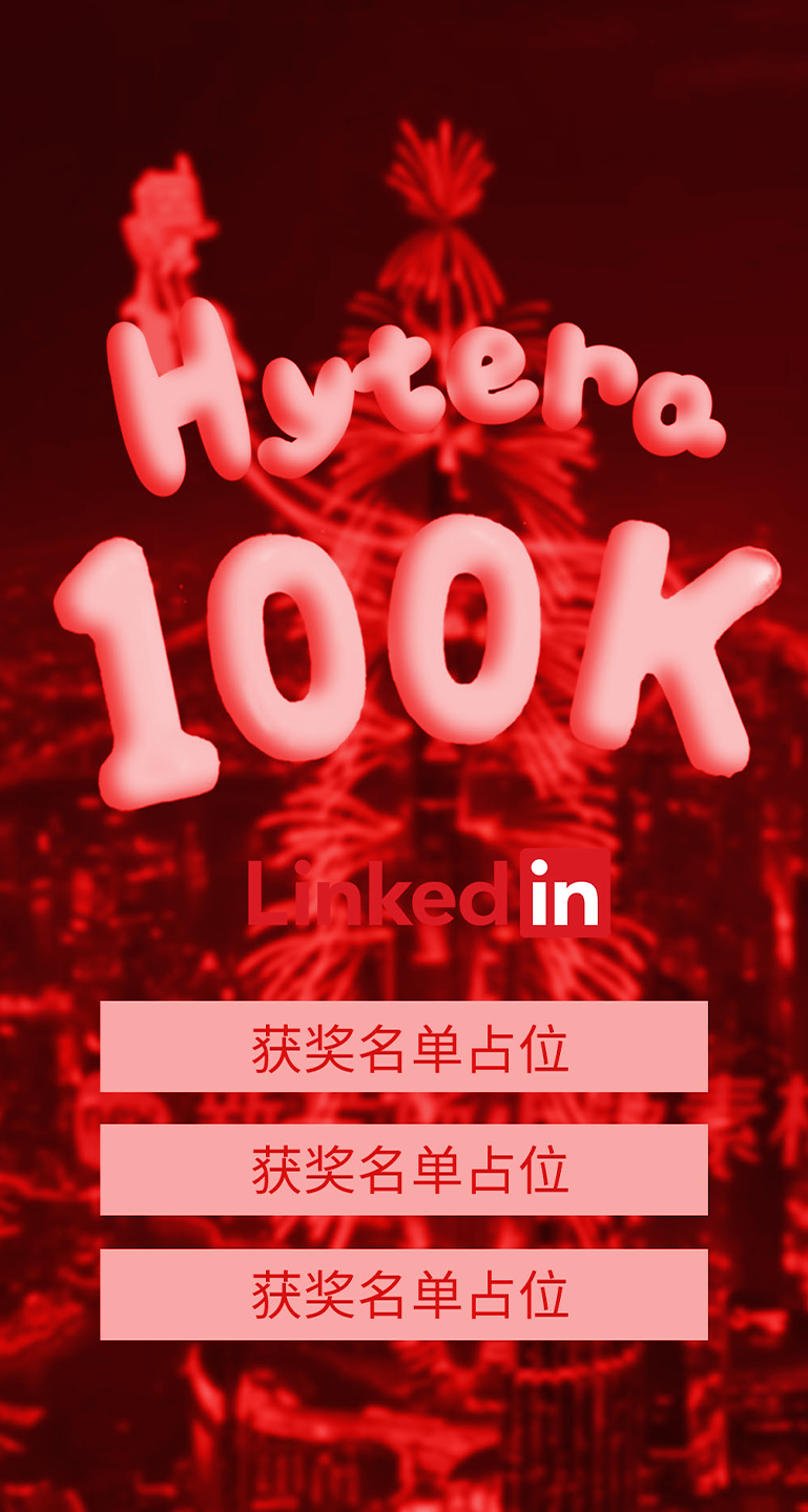 整体风格偏向现代科技+庆典仪式感,符合海能达“专业而不冰冷”的品牌形象。夜景以深蓝+暖金为主,突出城市繁华;小海、光轨、文字均采用蓝绿色调,形成品牌视觉识别;烟花使用金色+白色高光,增强庆典氛围,但不喧宾夺主;最终文字“Hytera 100K”采用立体白字+轻微投影,简洁大气,易于阅读。