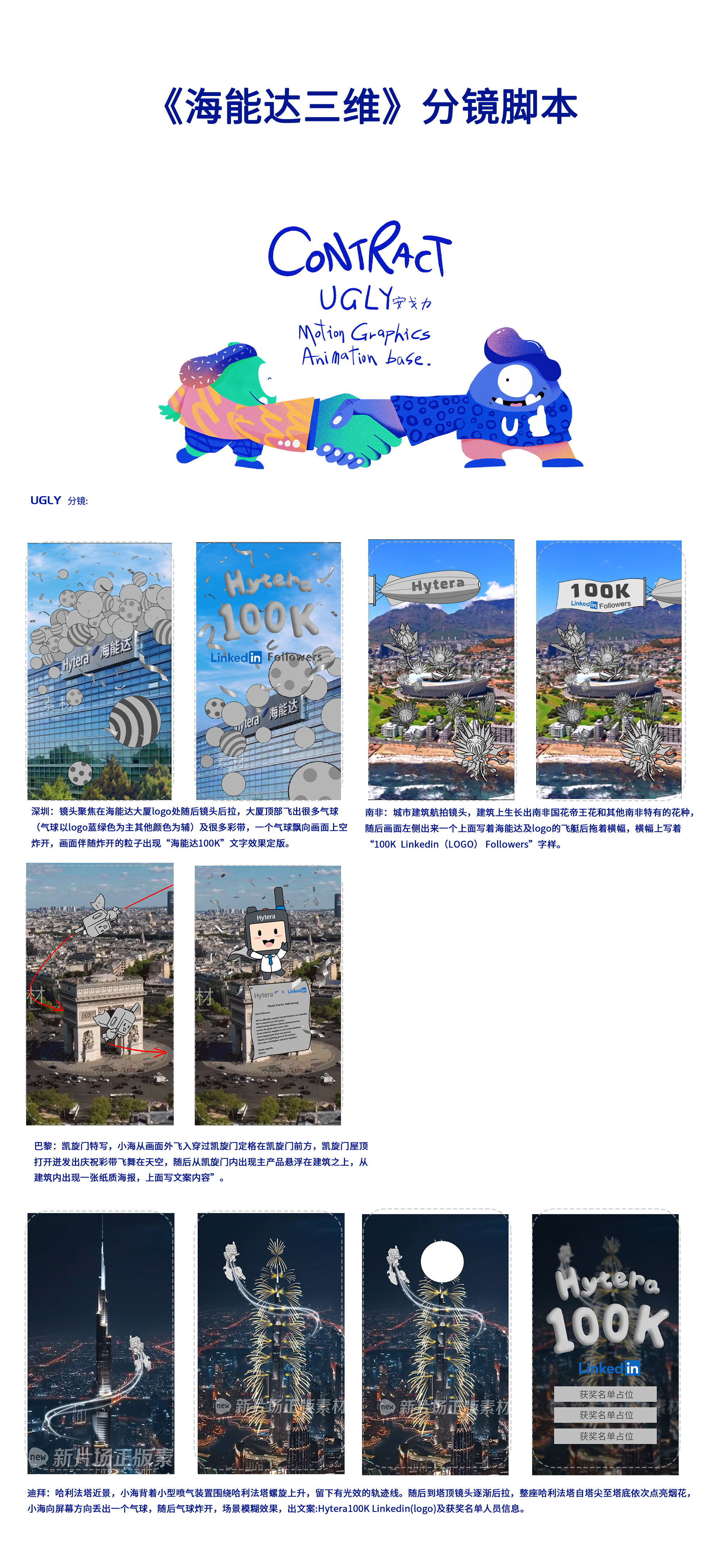 Since its inception in Shenzhen in 1993, Hytera has evolved from a start-up specializing in the research and development of walkie-talkies into a globally leading provider of private network communication solutions. Now, with a total global workforce exceeding 100,000 (100K), Hytera has officially entered a new era of global organizational development. To commemorate this milestone, we have specially planned a series of short films titled "Hytera 100K Global Celebration", utilizing a combination of live-action footage and 3D animation. Spanning across five continents, the series selects five symbolic city nodes - Shenzhen, Bali, Indonesia, Johannesburg, South Africa, and Dubai, United Arab Emirates - to tell a story about connection, growth, and transcendence through highly imaginative visual language.