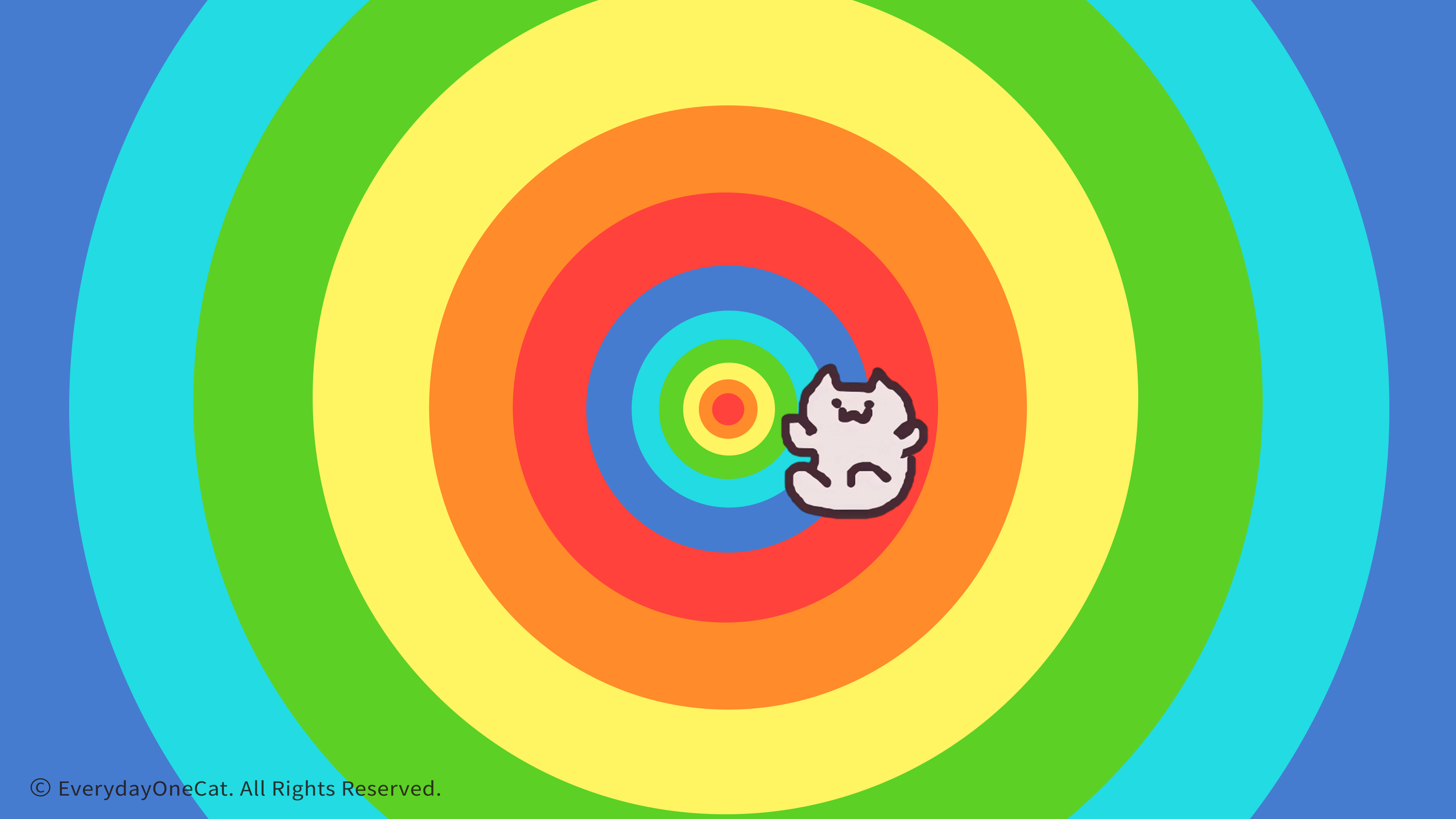 动画中的主角——每日一猫,用最朴素的线条勾勒出圆滚滚的身形和豆豆眼,没有多余的细节,却能让人瞬间萌化。这种“低信息密度” 的设计,恰恰是其治愈感的来源。无论是在咖啡杯里游泳,还是在彩虹上滑滑梯,萌猫的行为逻辑完全跳脱现实,充满了脑洞大开的趣味。这种 “不按常理出牌” 的设定,为观众提供了一个逃离现实压力的情绪出口。它没有固定的表情和性格,却能让每个观众都投射自己的情绪。你可以在它身上看到慵懒、快乐、甚至一丝狡黠,这种 “千人千面” 的解读空间,让这只猫拥有了强大的生命力和传播力。
