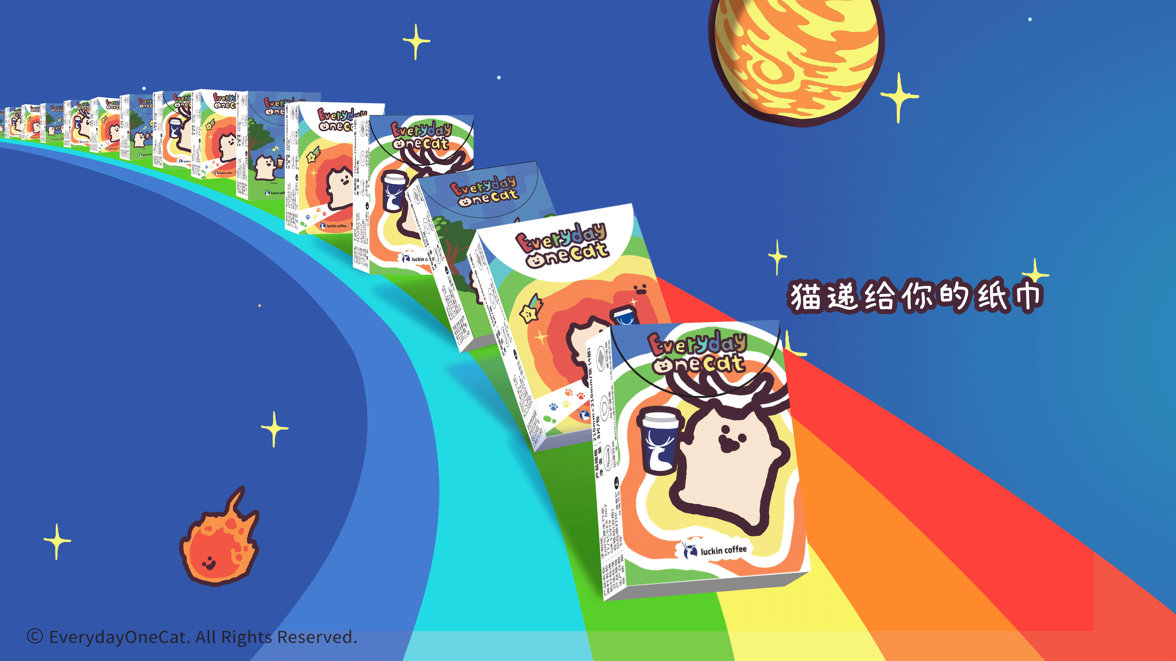 As a popularizer in China's coffee consumption market, Luckin Coffee takes "making it easy for every customer to enjoy a good cup of coffee" as its mission, and continues to bridge the gap with young consumers through its cost-effective and frequently updated collaboration strategy. "Everyday One Cat" is a popular healing IP that has gained a large number of "cat-loving" fans on social media platforms in recent years, thanks to its soft and cute lines, whimsical ideas, and rainbow-colored visual language.